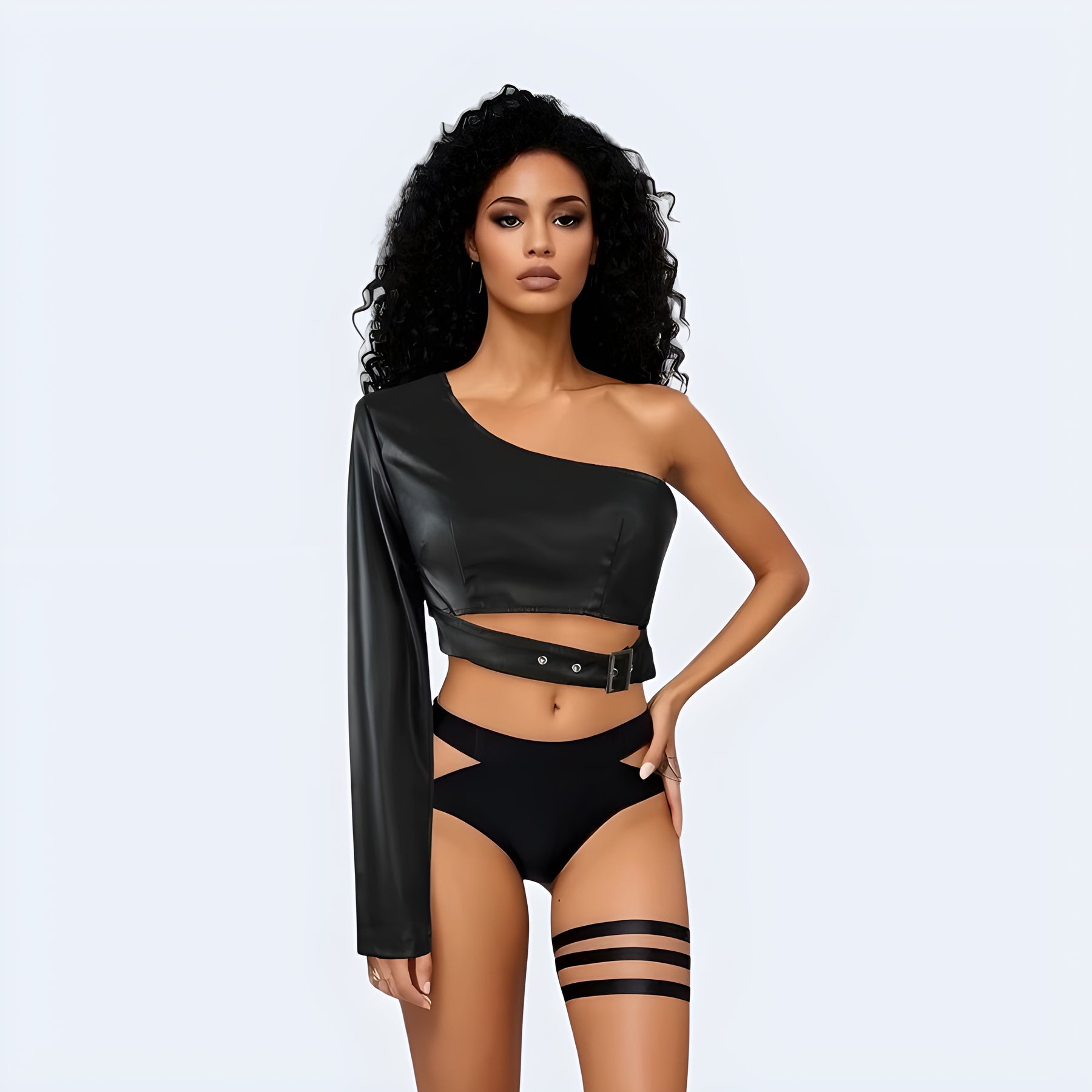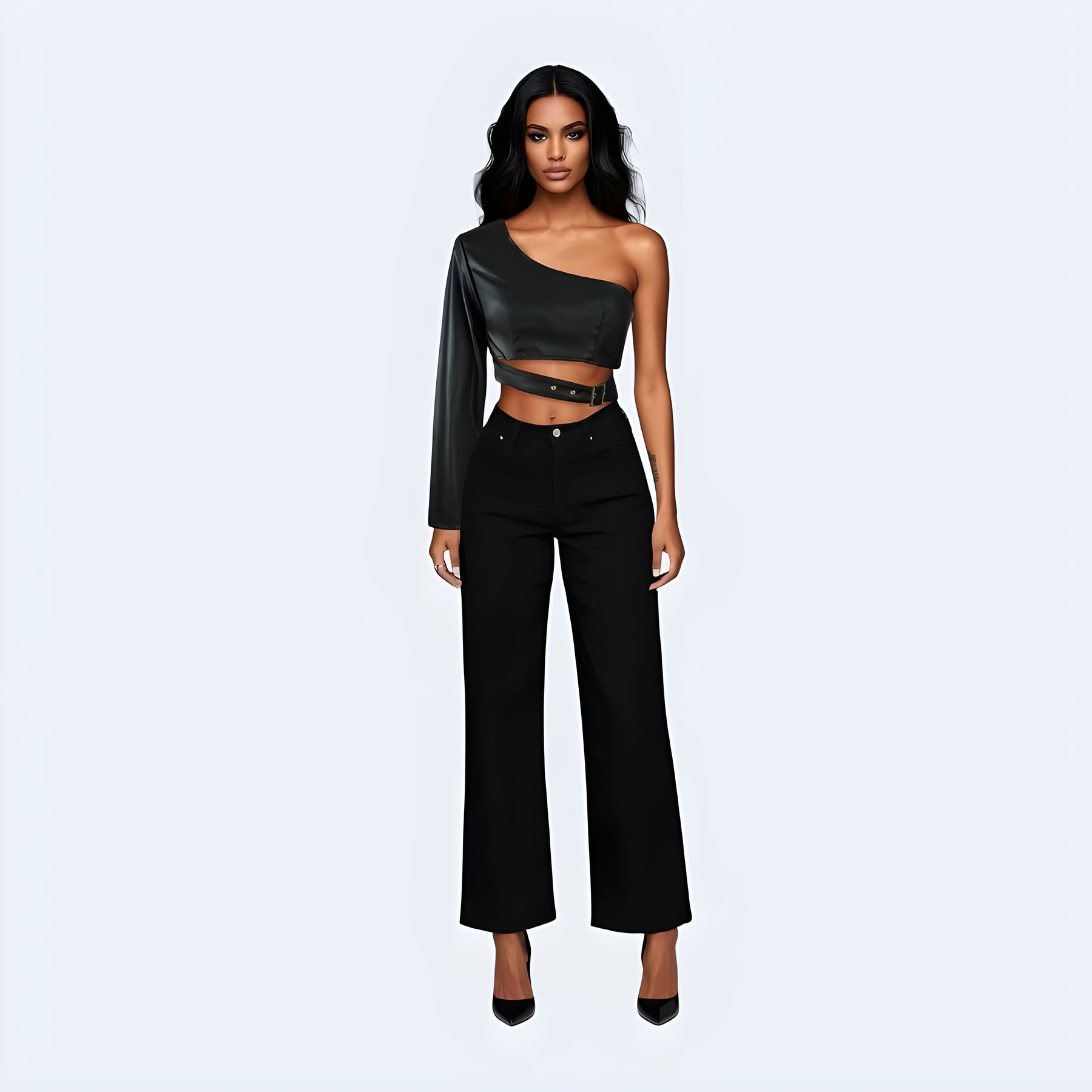 One Sleeve Black Top