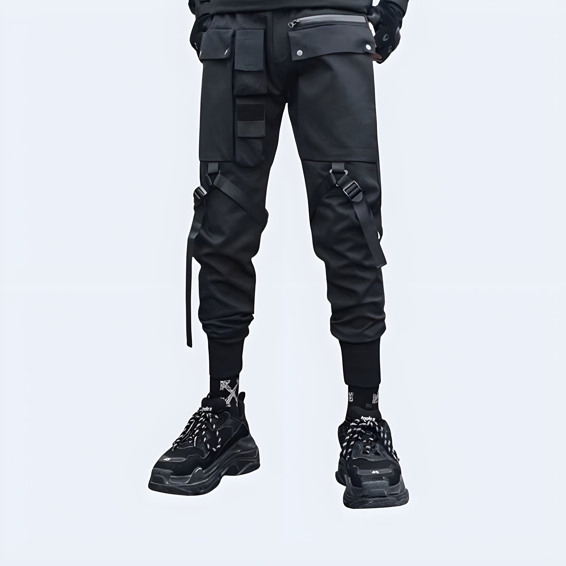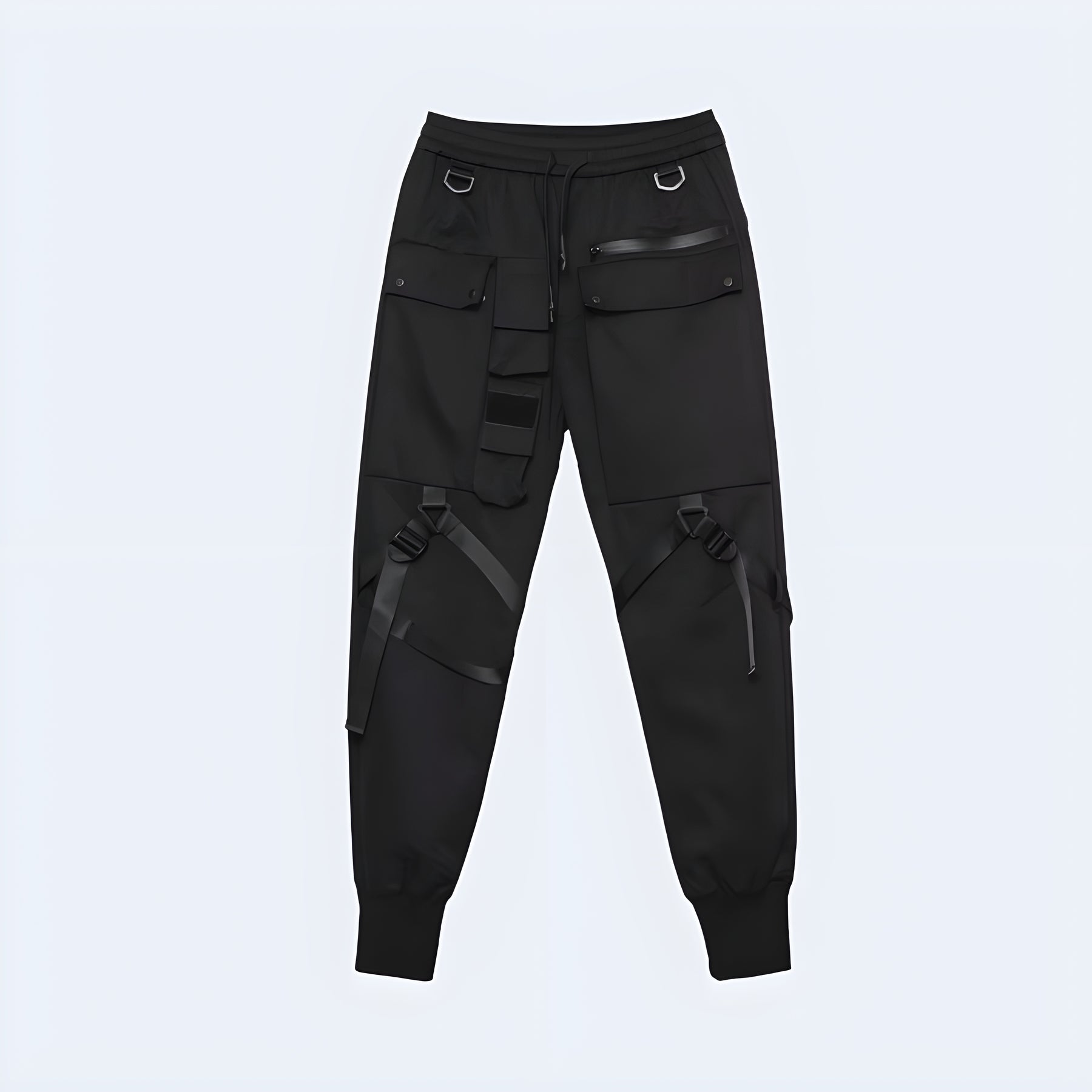 Elevate your wardrobe with our Skinny Techwear Joggers in classic black. These slim-fitting trousers bring both fashion and durability to your everyday look. Crafted from high-quality fabric, they resist wear and tear, ensuring they remain a staple in your collection. Designed to embrace the techwear aesthetic, these joggers provide a relaxed fit that contours to your body, combining style and comfort seamlessly. With the added convenience of machine washability, they are the ideal choice for a busy lifestyle.